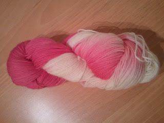 ein Strang meiner selbstgefärbten Sockenwolle "Zuckerwatte" 100g: